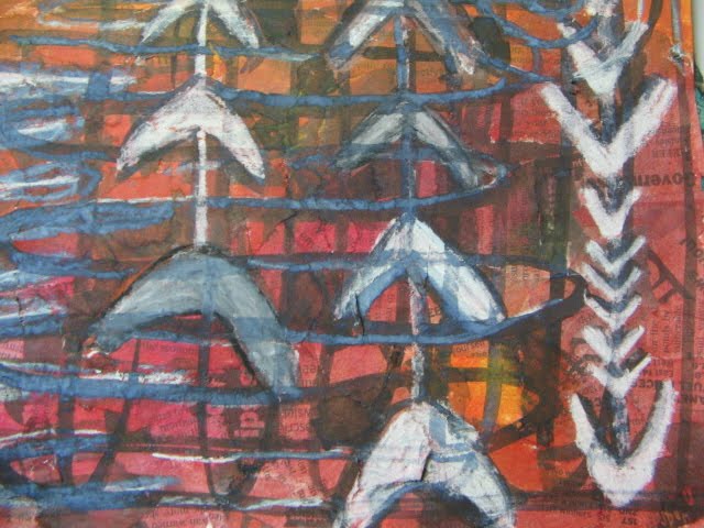 Process- 4 pen drawings, photocopied, cut up, rearranged and glued on A4paper. Added ink and food colouring to enhance aesthetic quality.